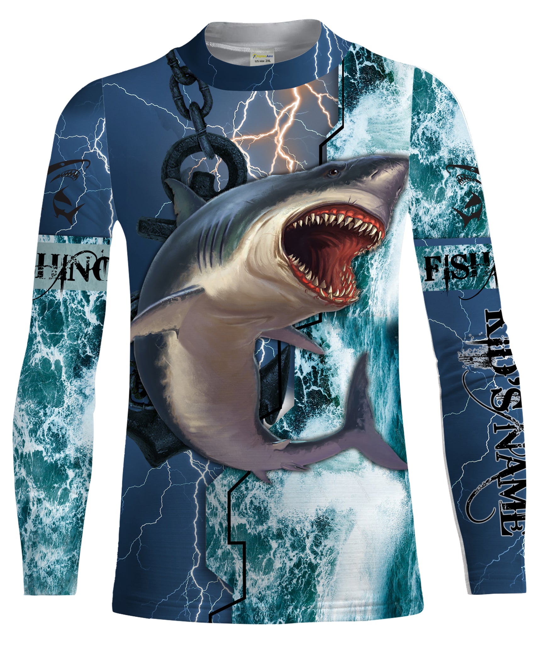 Shark Fishing ocean blue camo fishing Customize Name UV protection UPF 30+ long sleeves fishing shirts NQS2020
