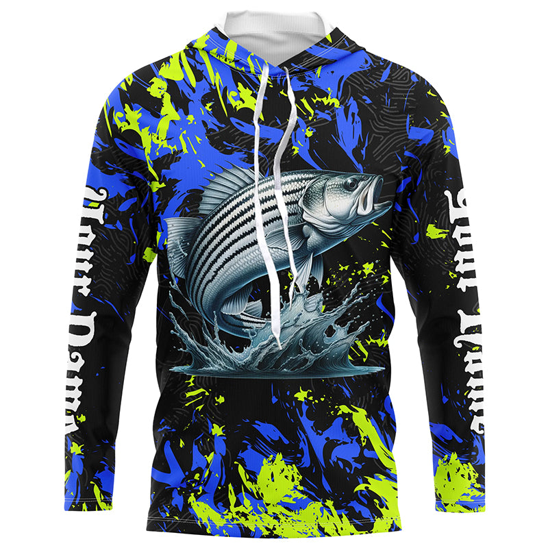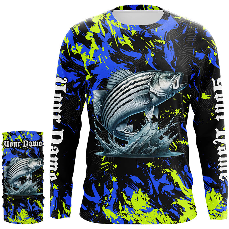 Striped bass fishing green blue camo Custom UV protection performance long sleeve fishing jerseys NQS7241