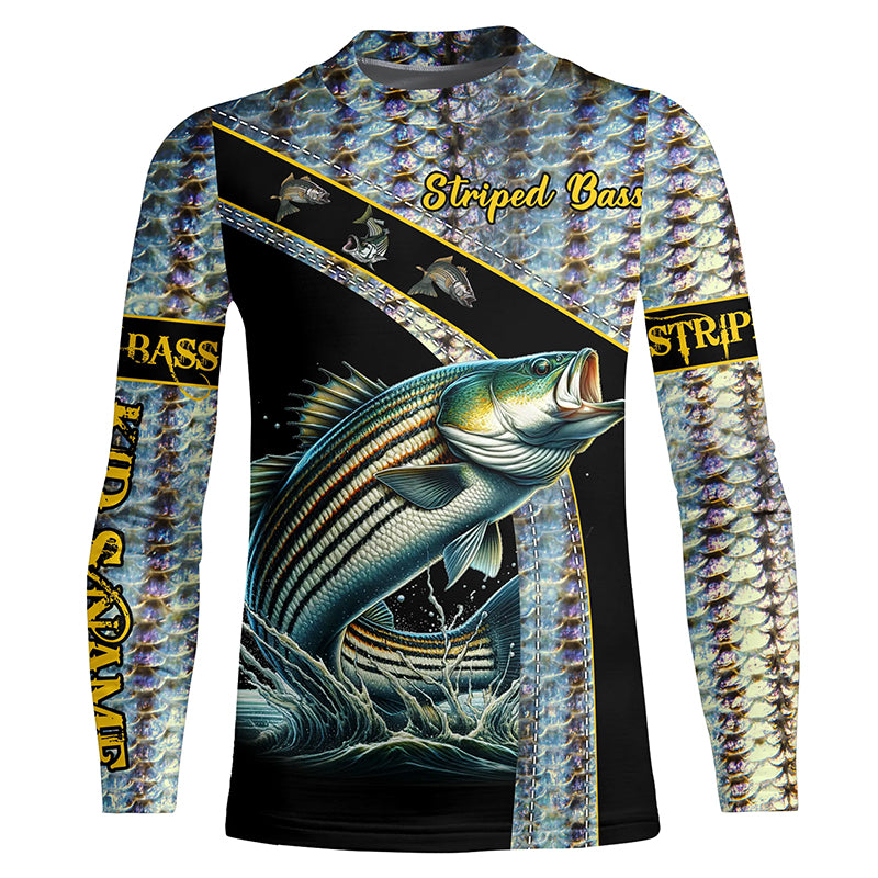 Striped Bass fishing scales UV protection Custom long sleeve fishing shirts, Striper fishing jerseys NQS4891