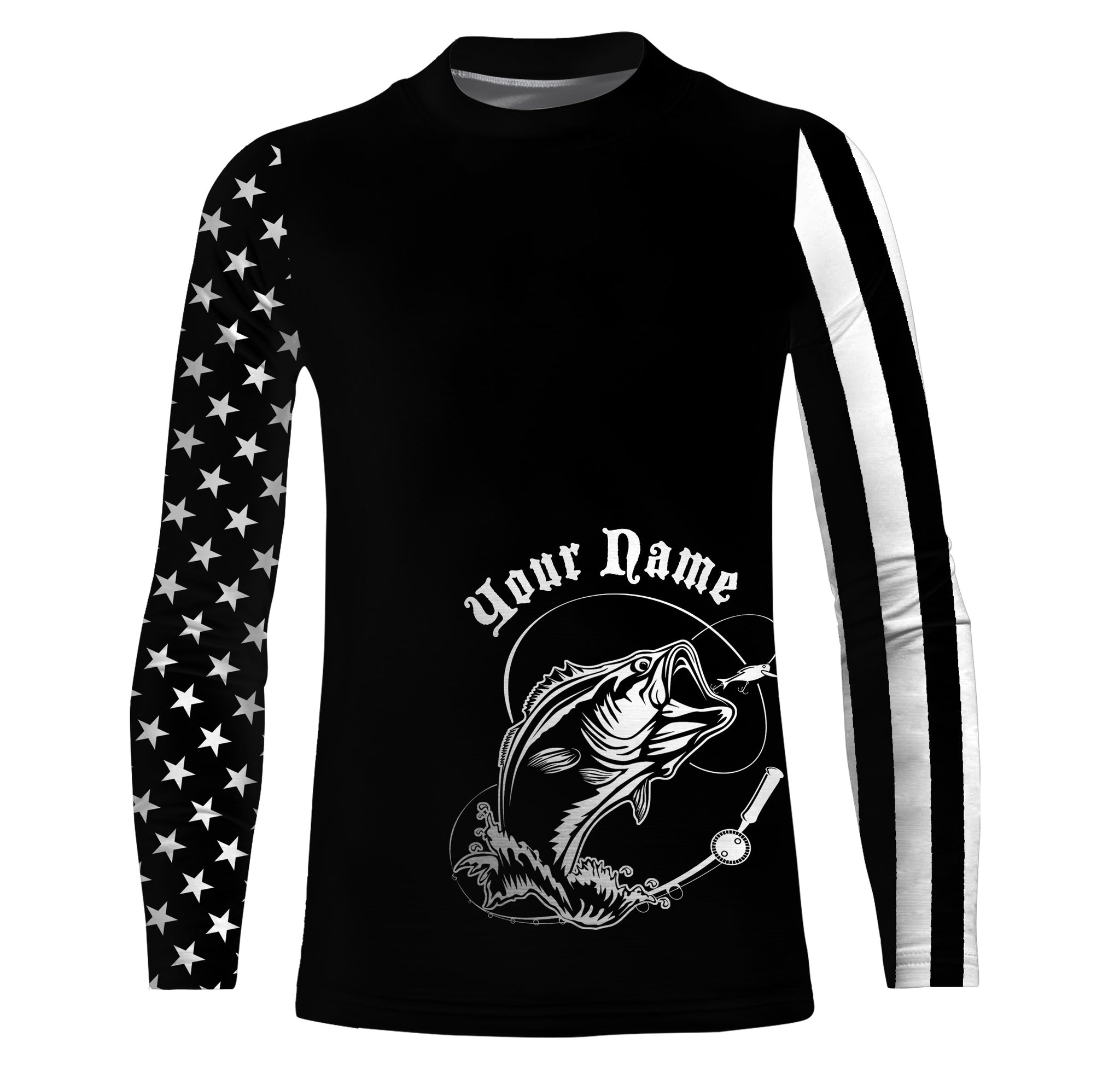 Custom Name Bass Fishing US Flag Performance Fishing Shirt, Bass Fishing Jerseys