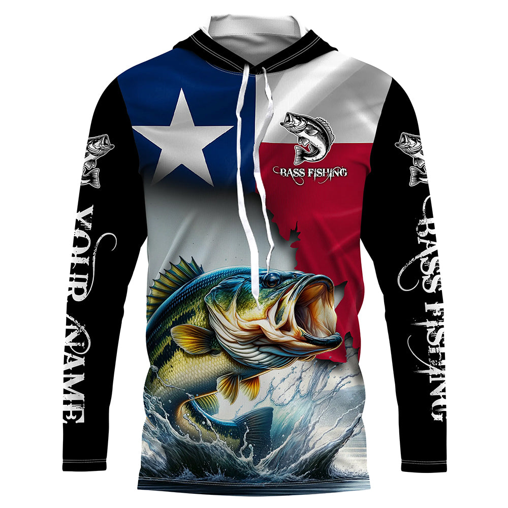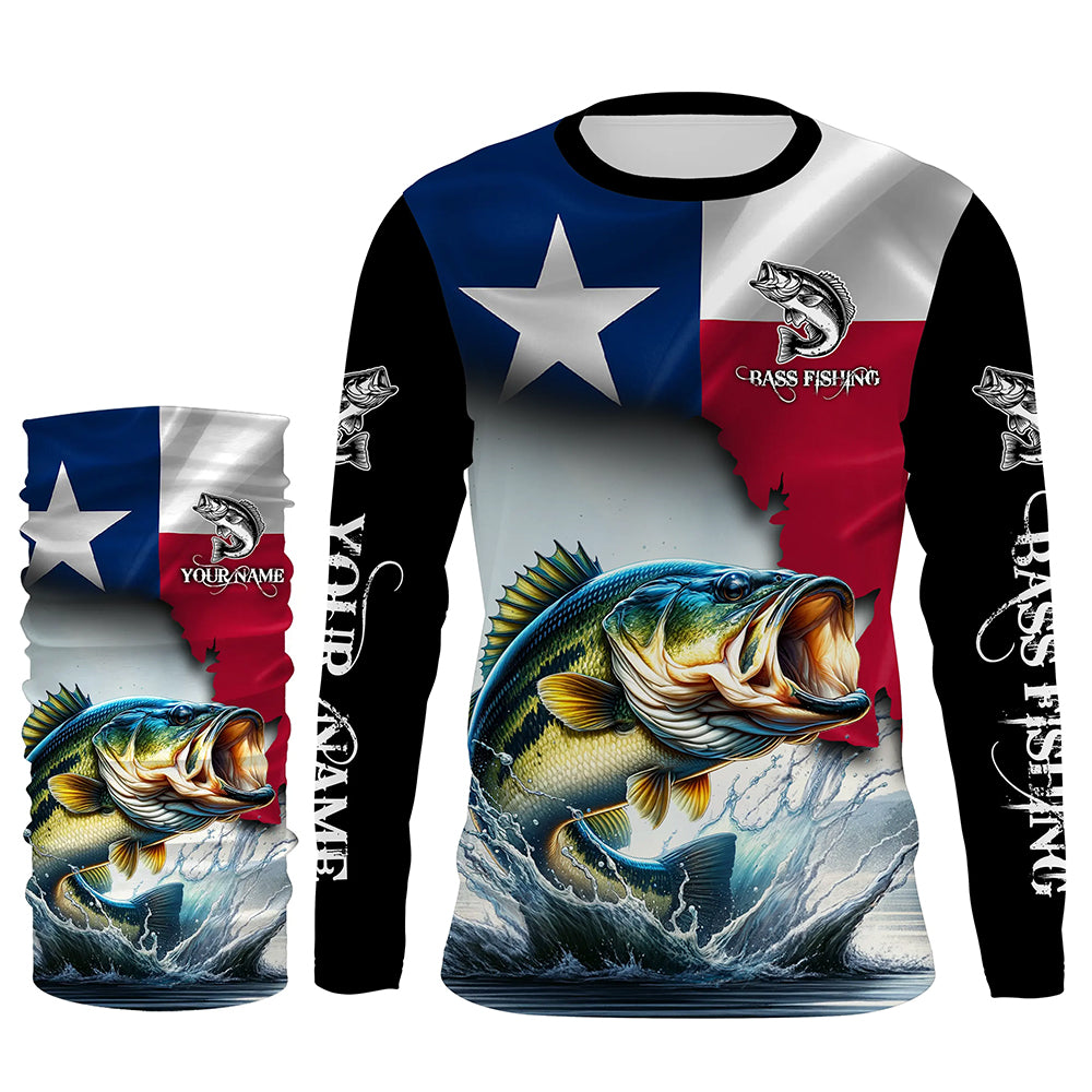 Texas Bass fishing Texas flag, TX fishing Customize Name UV Long Sleeve Fishing Shirts NQS2181