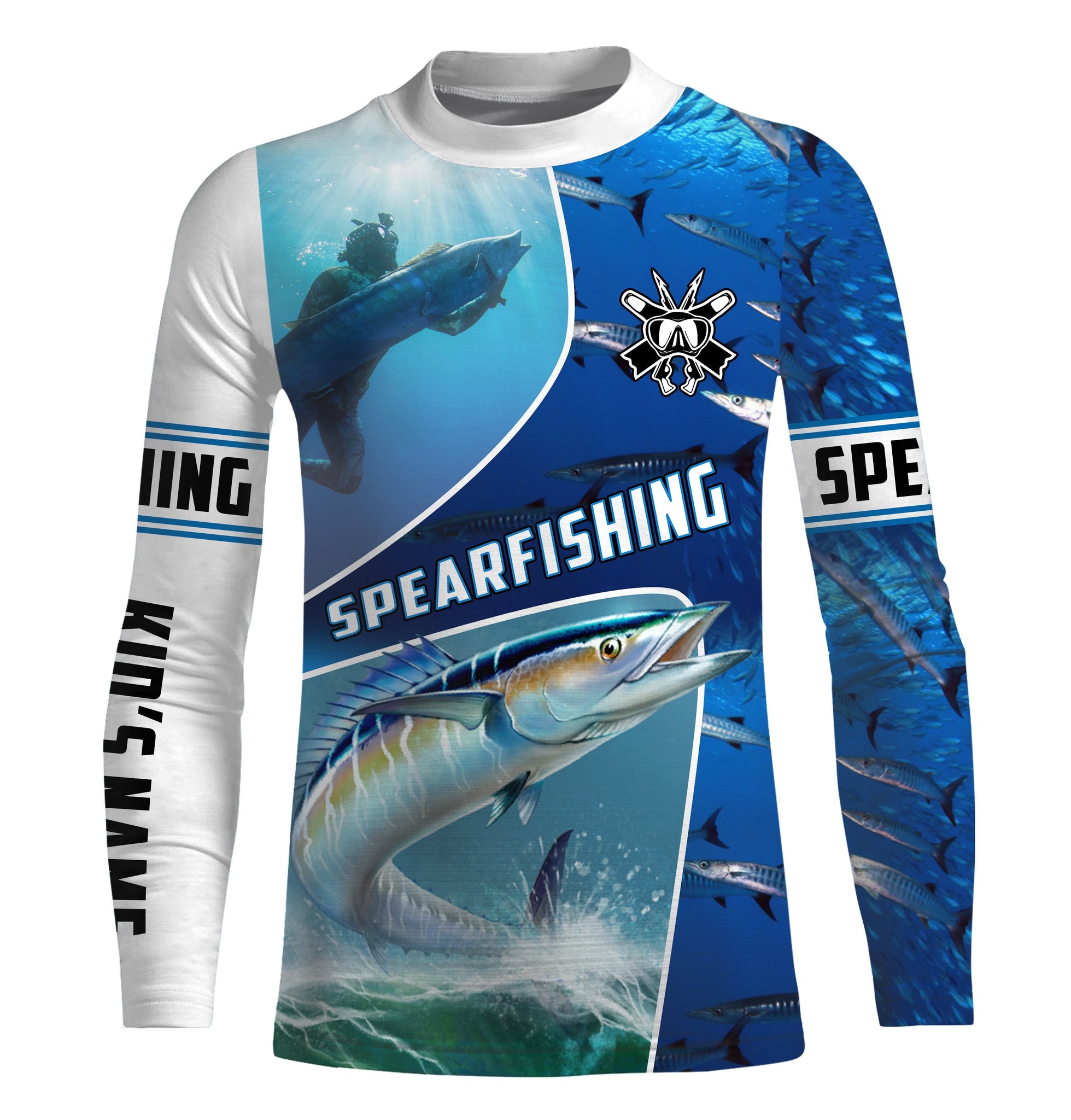 Wahoo blue water spearfishing Custom Name UV protection UPF 30+ fishing jersey, custom fishing apparel NQS3069