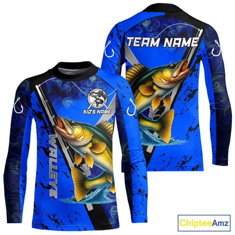 Blue Camo Walleye fishing custom Walleye sun protection long sleeve fishing shirts for Team NQS10817