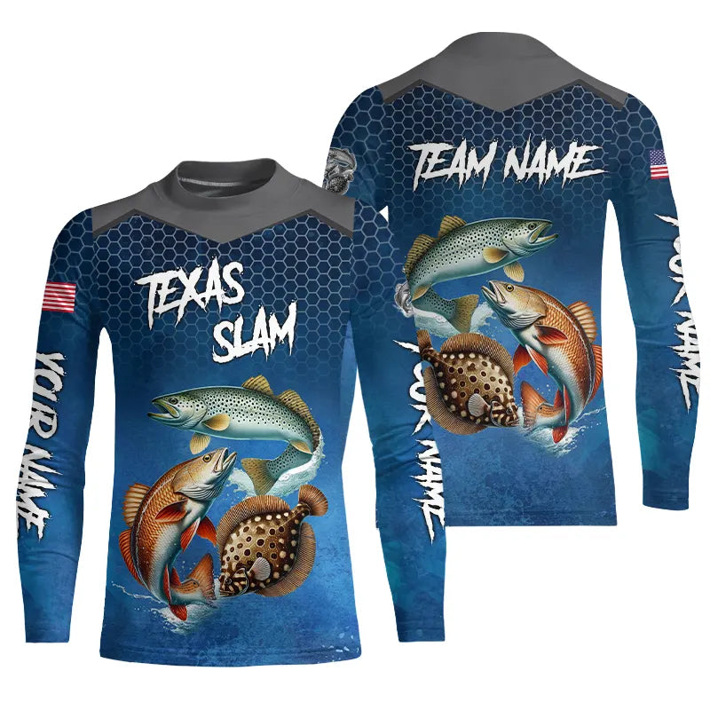 Blue Texas Slam fishing Custom performance long sleeve team Redfish, Trout, Flounder fishing shirt NQS9239