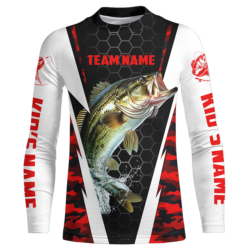 Custom Bass Fishing Jerseys For Fishing Team, Largemouth Bass Long Sleeve Fishing Shirts | Red IPHW4532