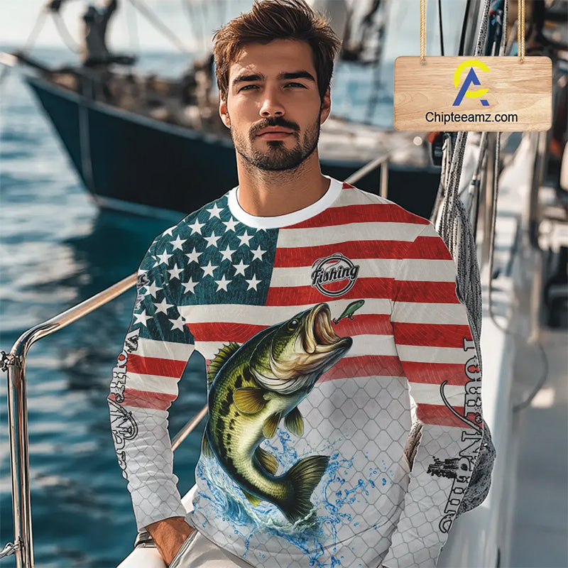 American Flag Largemouth Bass Fishing Custom Bass Fishing tournament Shirt, patriotic Bass jersey NQS10981