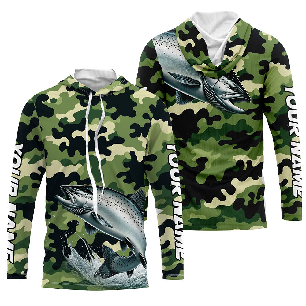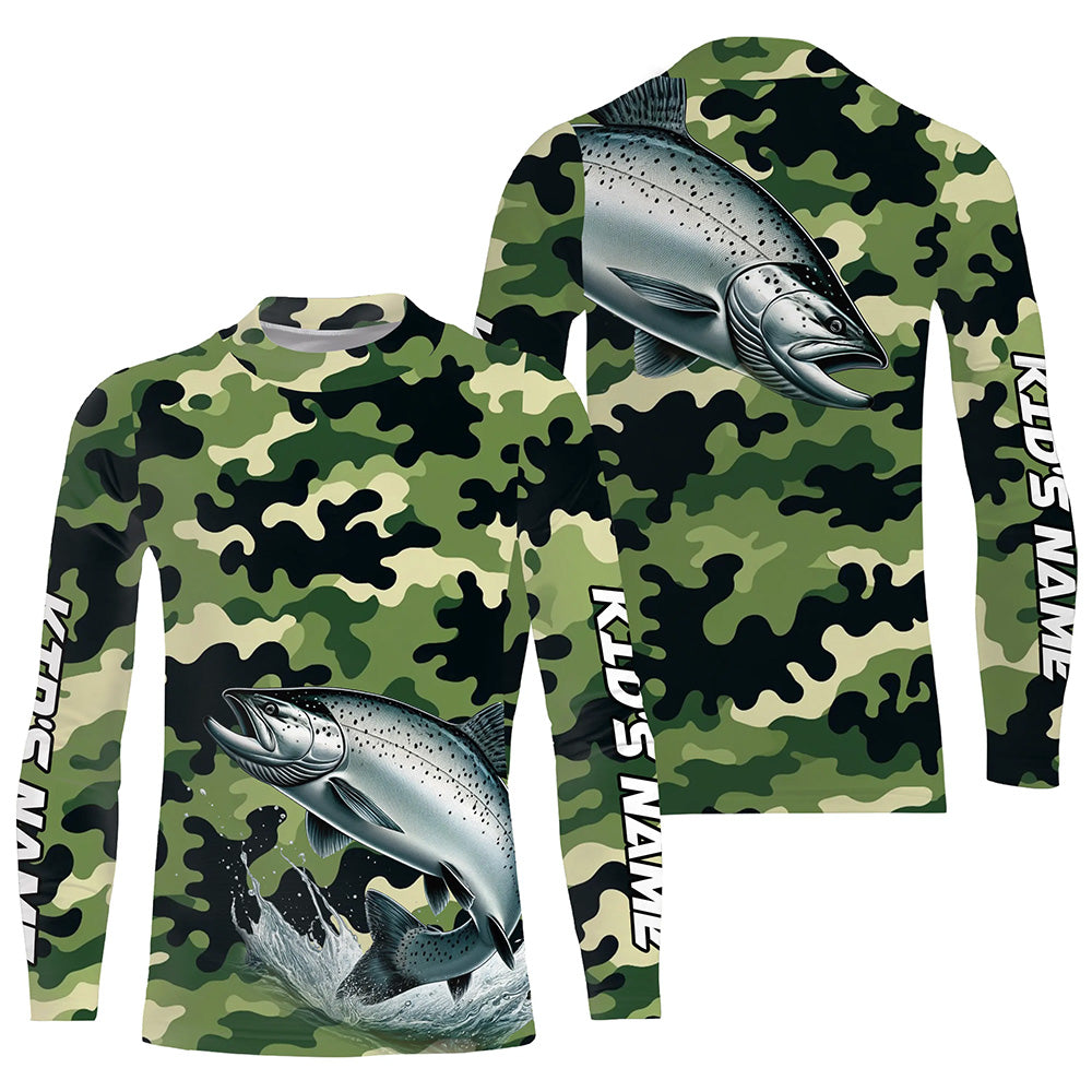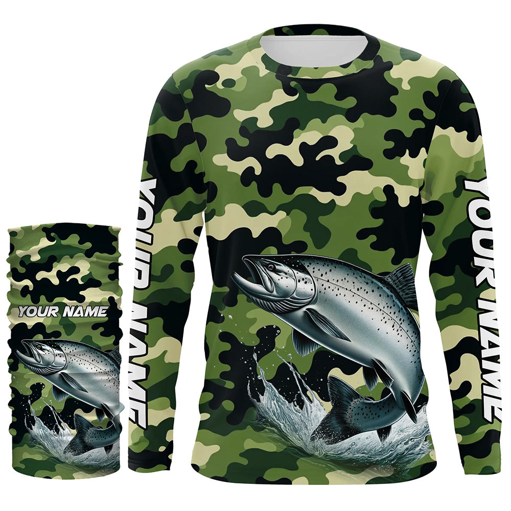 Black Green camo Chinook salmon fishing Custom Long Sleeve Tournament performance Fishing Shirts NQS7555