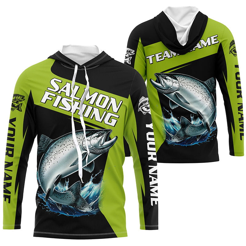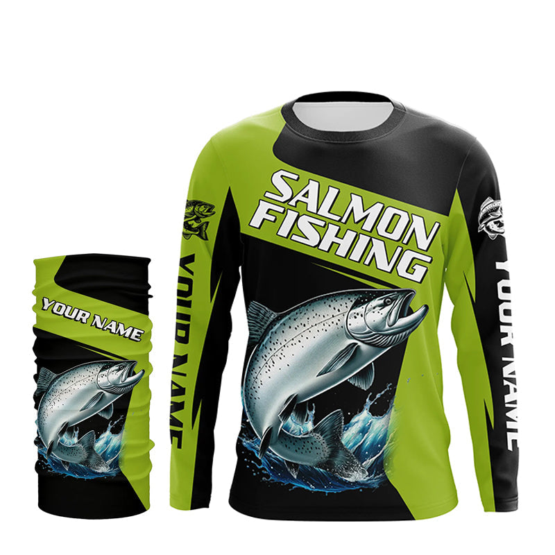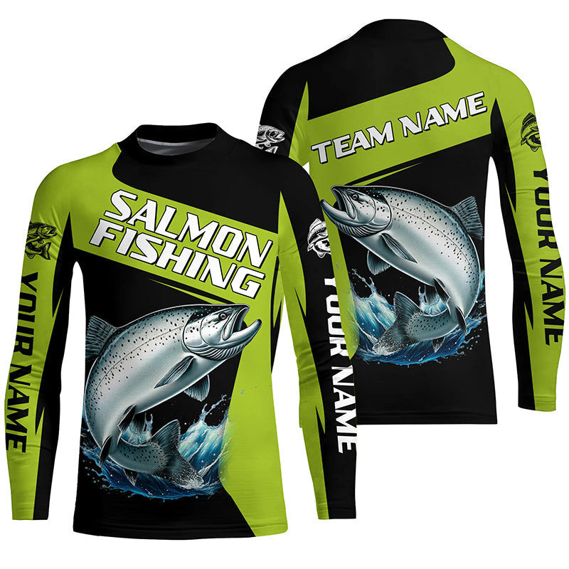 Black Green Chinook Salmon fishing Custom Long Sleeve Tournament Fishing Shirt, Salmon Fishing Jerseys NQS7658