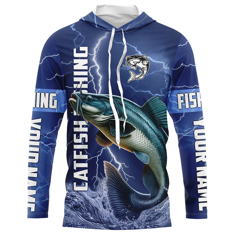Catfish Fishing blue lightning jerseys custom performance Long Sleeve tournament fishing shirts NQS8149