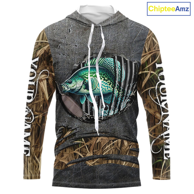 Crappie fishing camo metal grunge pattern Custom Crappie fishing shirts tournament fishing jerseys NQS11032