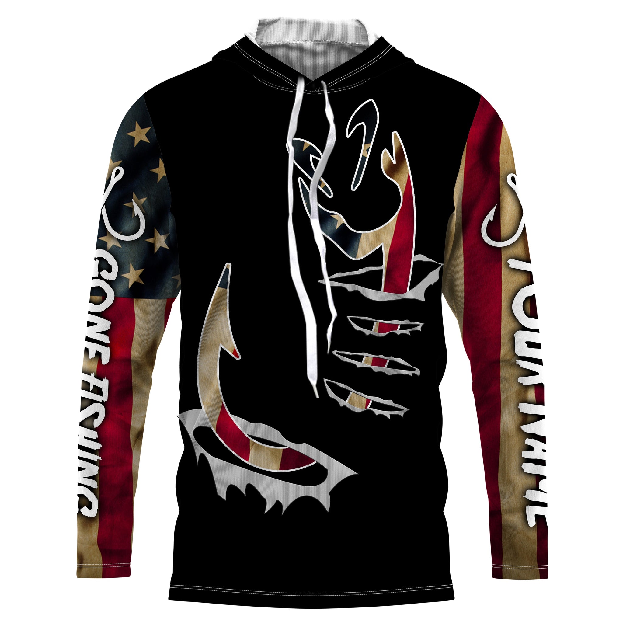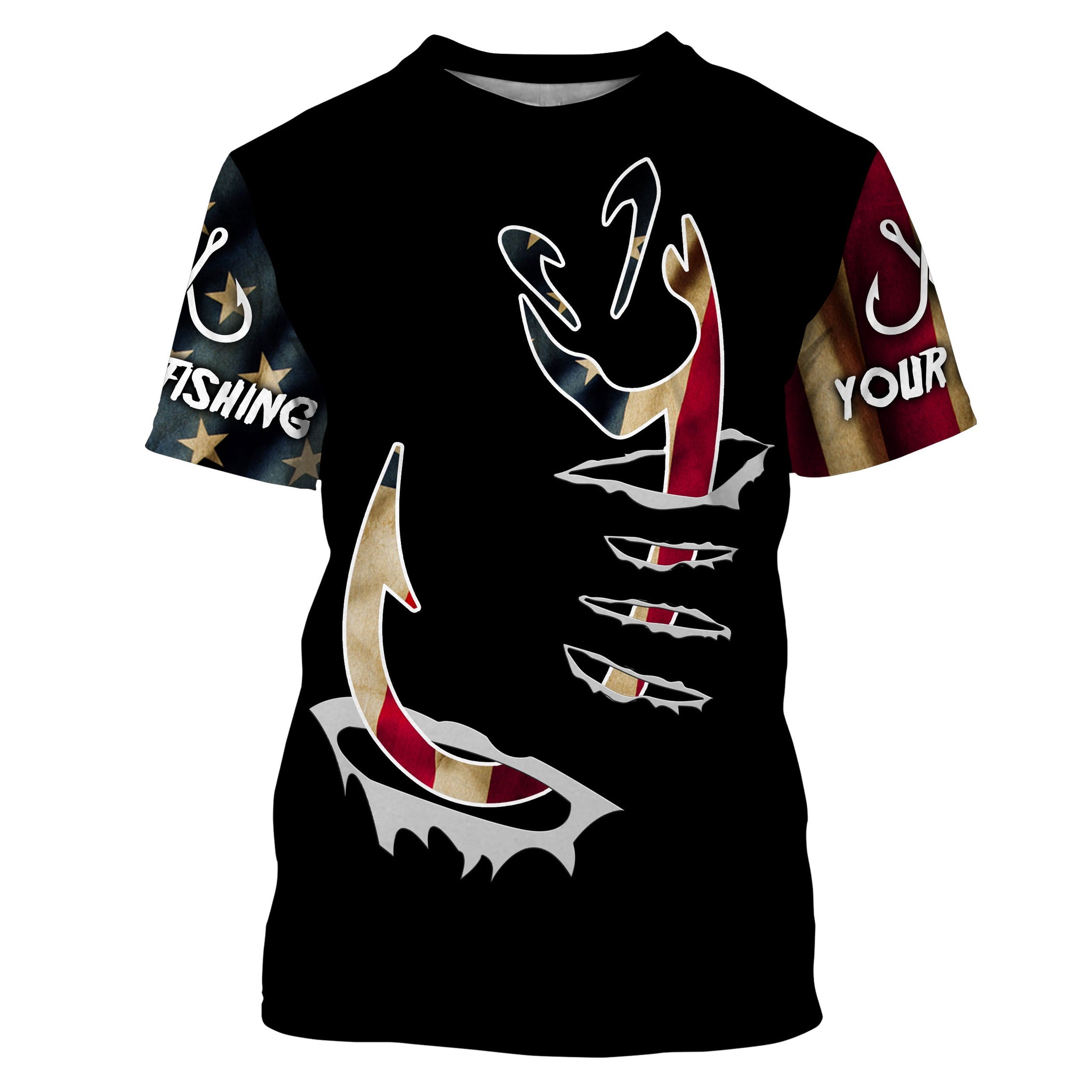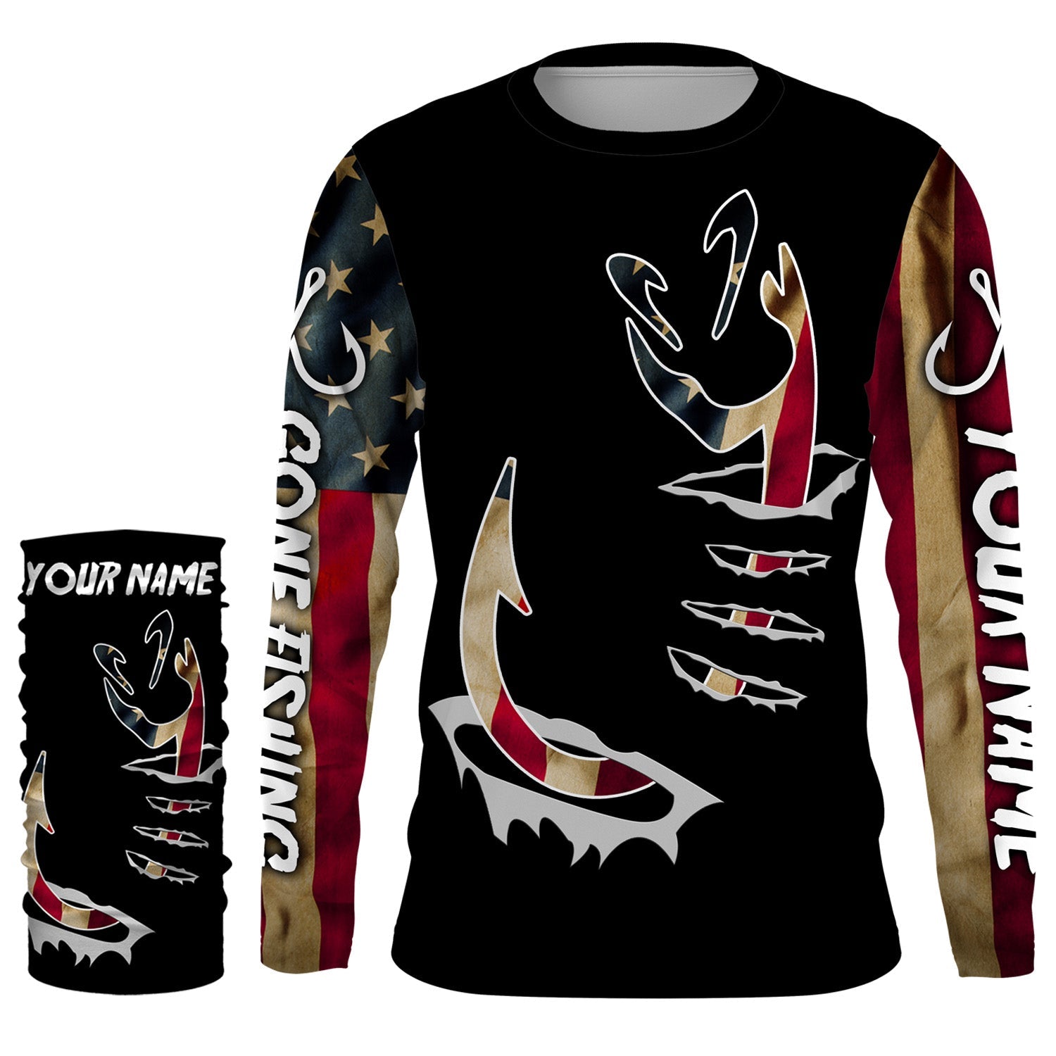 Fishing Hook 3D Retro American flag Tournament Fishing Shirt UPF30+, Personalized Fishing Gifts FSD3005