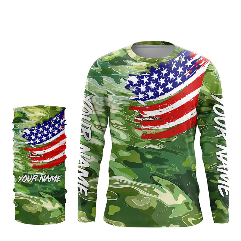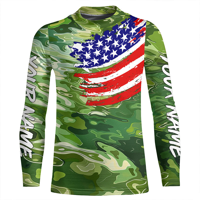 Green camo fishing American flag Custom patriot performance long sleeve fishing tournament shirts NQS7388