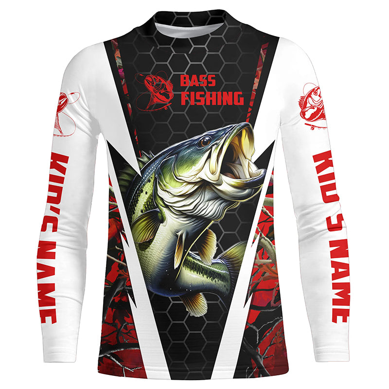 Personalized Bass Fishing jerseys, Bass Fishing Long Sleeve Fishing tournament shirts | red camo IPHW3681