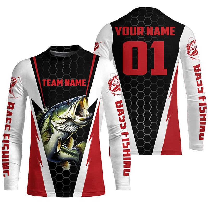 Personalized Bass Fishing Sport Jerseys, Bass Fishing Long Sleeve Tournament Shirts |Red IPHW3742