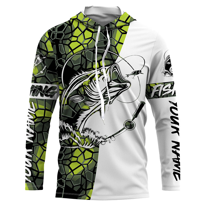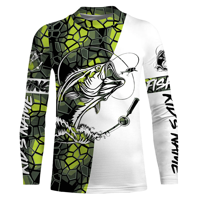 Largemouth Bass Fishing Custom Long Sleeve Shirts, Bass Tournament Fishing Jerseys | Green Camo IPHW3855