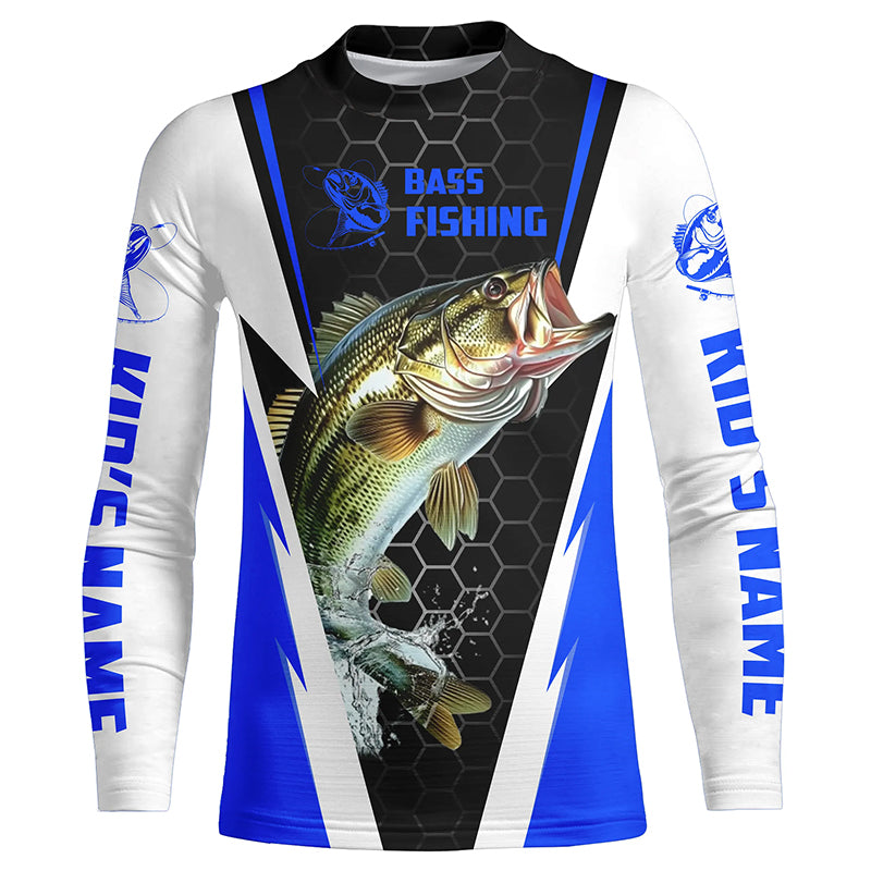 Personalized Bass Fishing Jerseys, Bass Fishing Long Sleeve Fishing Tournament Shirts | Blue IPHW5726