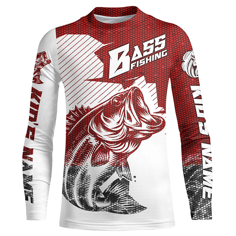 Personalized Bass Fishing Jerseys, Bass Fishing Long Sleeve Fishing Tournament Shirts | Red Camo IPHW5753