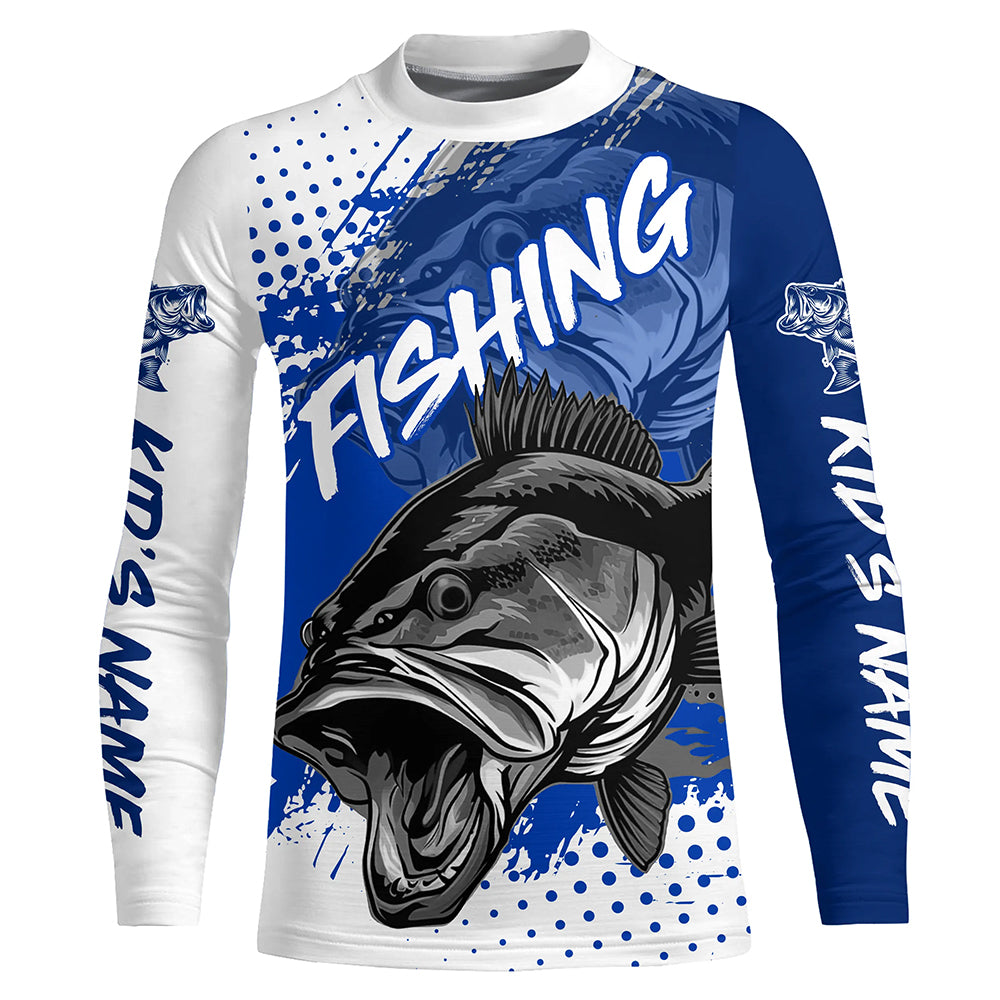 Personalized Bass Long Sleeve Tournament Fishing Shirts, Custom Bass Fishing Jerseys | Blue IPHW5800