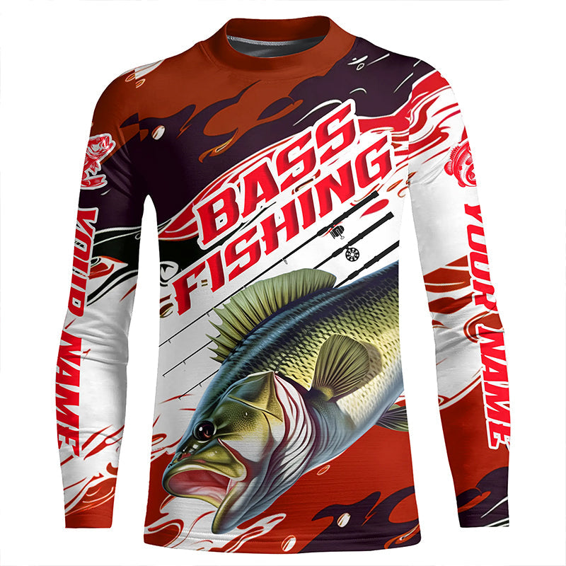 Custom Largemouth Bass Fishing Jerseys, Bass Long Sleeve Tournament Fishing Shirts | Red Camo IPHW6225