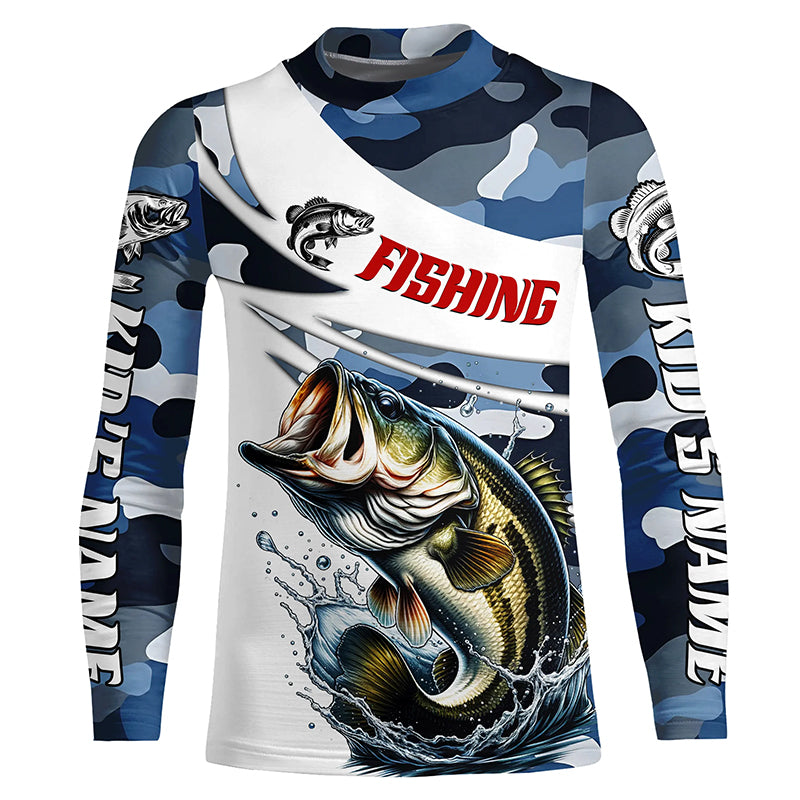Personalized Bass Fishing Jerseys, Camo Bass Fishing Long Sleeve Tournament Shirts IPHW6309