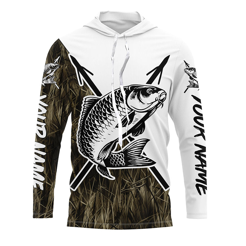 Carp Fish Bowfishing Shirts, Custom Carp Bow Fishing Long Sleeve Tournament Shirts | Grass Camo IPHW6395
