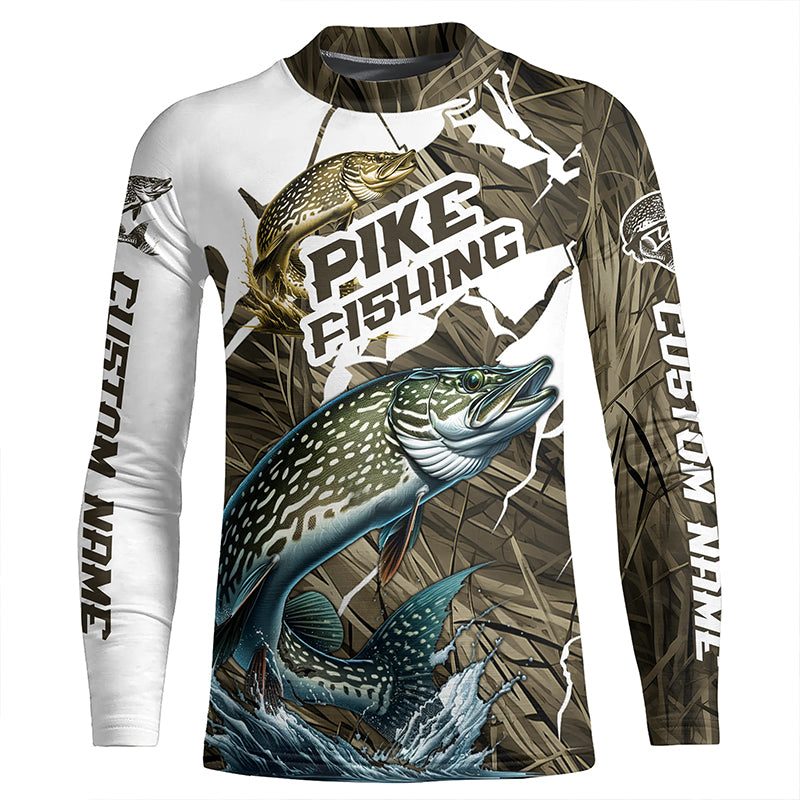 Custom Pike Fishing Long Sleeve Tournament Fishing Shirts, Pike Fishing Jerseys IPHW6452
