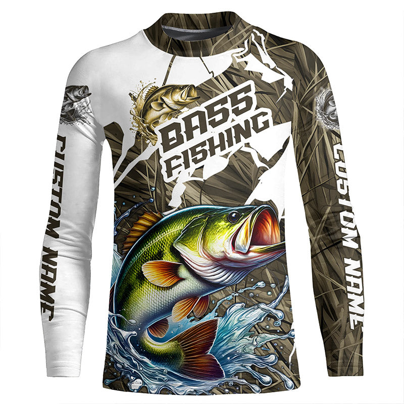 Custom Largemouth Bass Fishing Tournament Jerseys, Bass Long Sleeve Fishing Shirts Camo IPHW6843