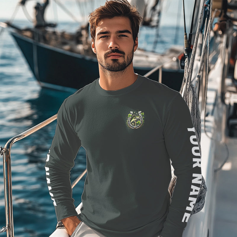 Custom St Patrick's Day Shamprock Largemouth Bass Long Sleeve Tournament Fishing Shirts IPHW8390