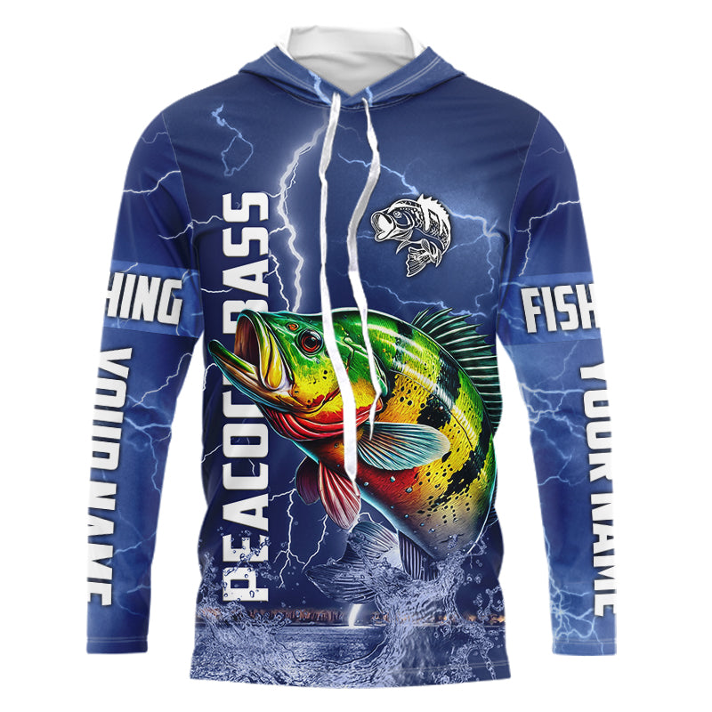 Peacock Bass Fishing blue lightning jerseys custom performance Long Sleeve tournament fishing shirts NQS9237