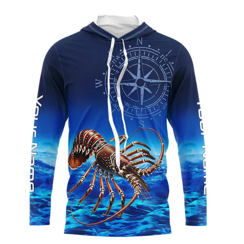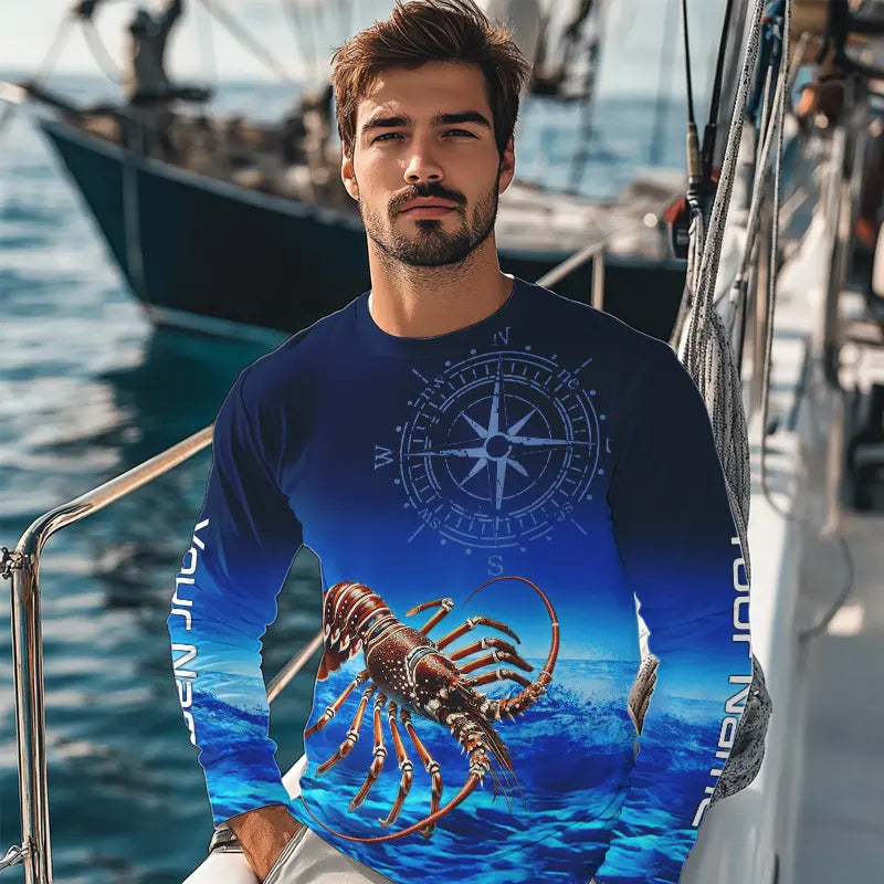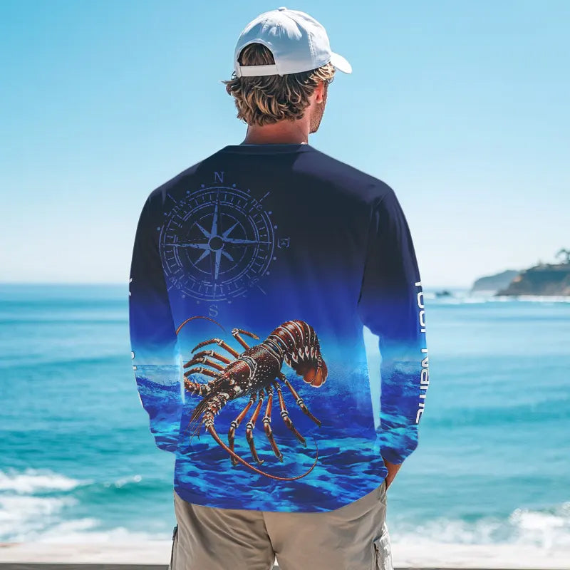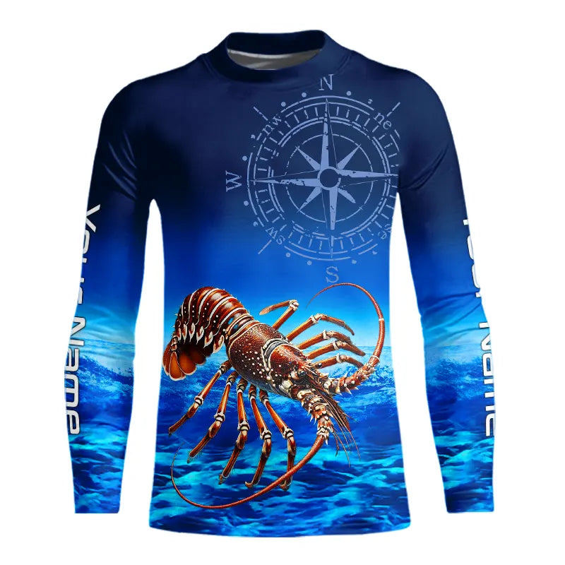 Personalized Florida Spiny Lobster Blue Performance Fishing Shirt, compass Lobster tournament Shirts NQS9735