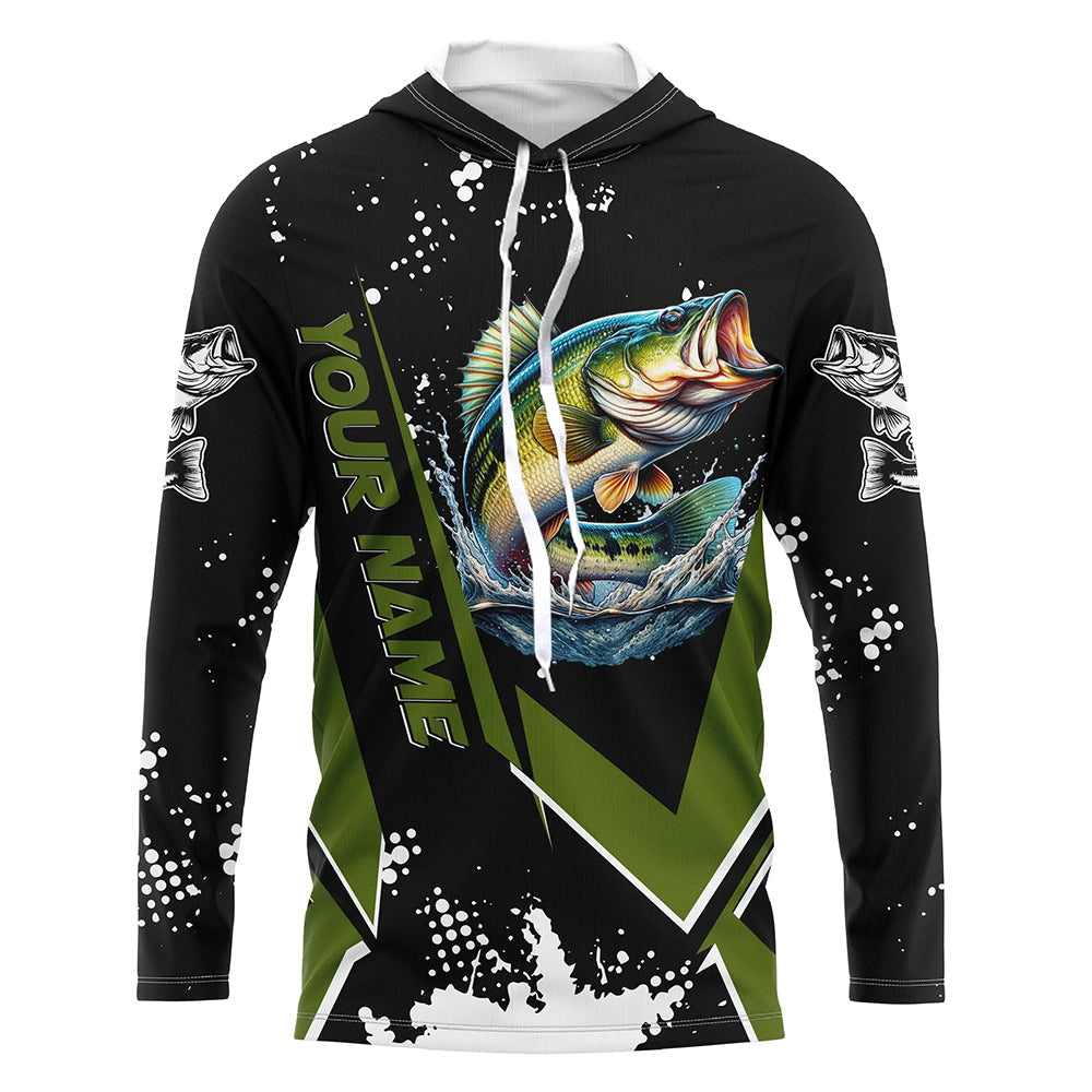 Personalized Largemouth Bass Fishing Jerseys, Black and Green Bass Fishing Tournament Shirts NQS7839