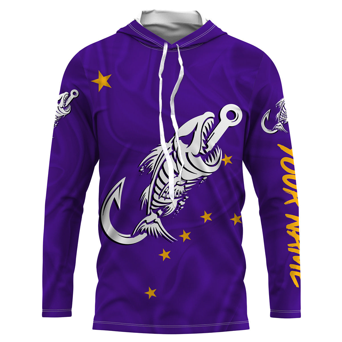 AK purple Fishing Custom Alaska Flag Fish hook skull sun protection fishing shirts for men, women NQS3388