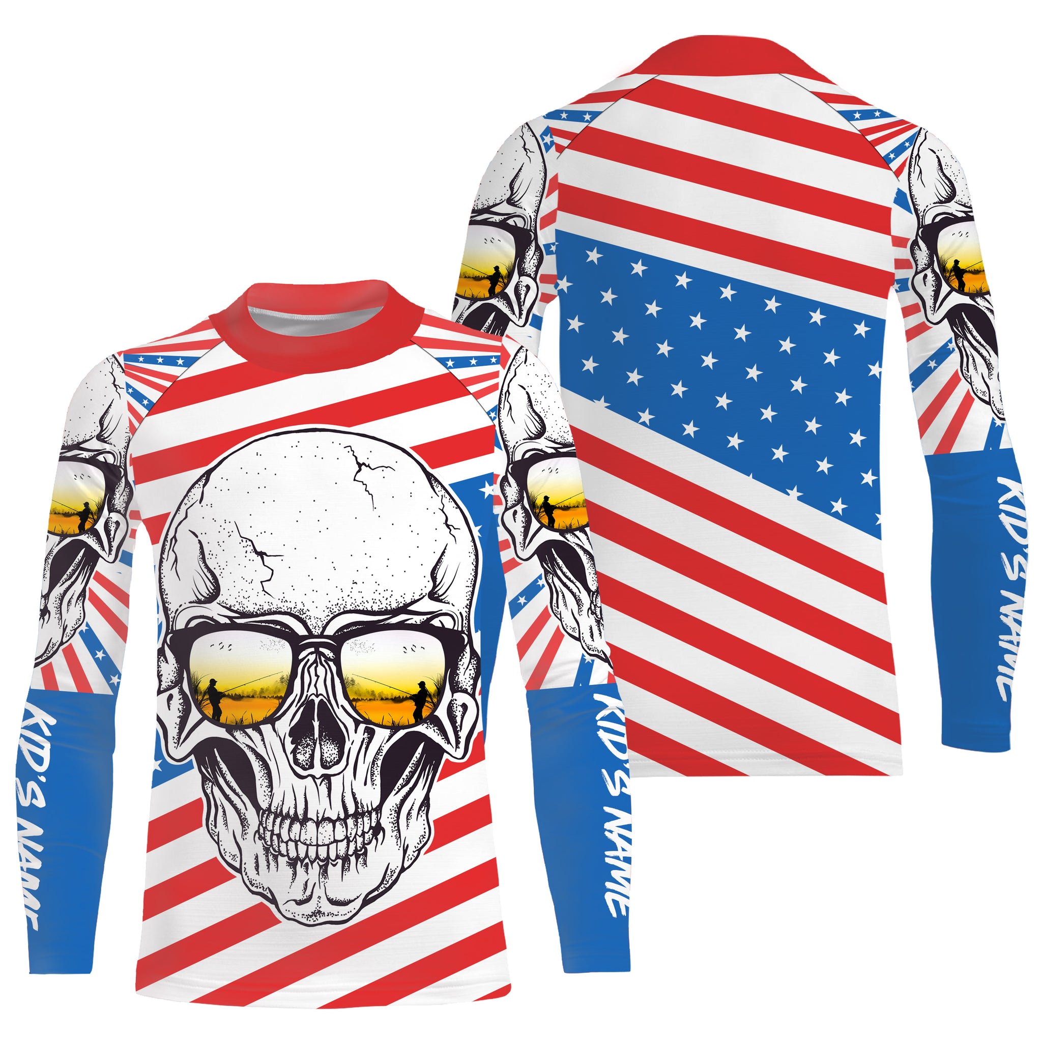 American Flag Skull Fishing Custom UV Long Sleeve Performance Fishing Shirts, Gift for Fisherman TTN89
