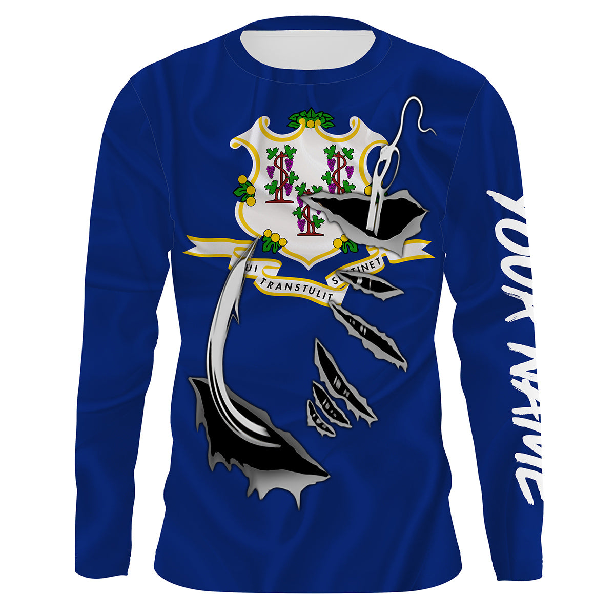 Connecticut Flag 3D Fish Hook UV Protection Custom Long Sleeve performance Fishing Shirts IPHW486