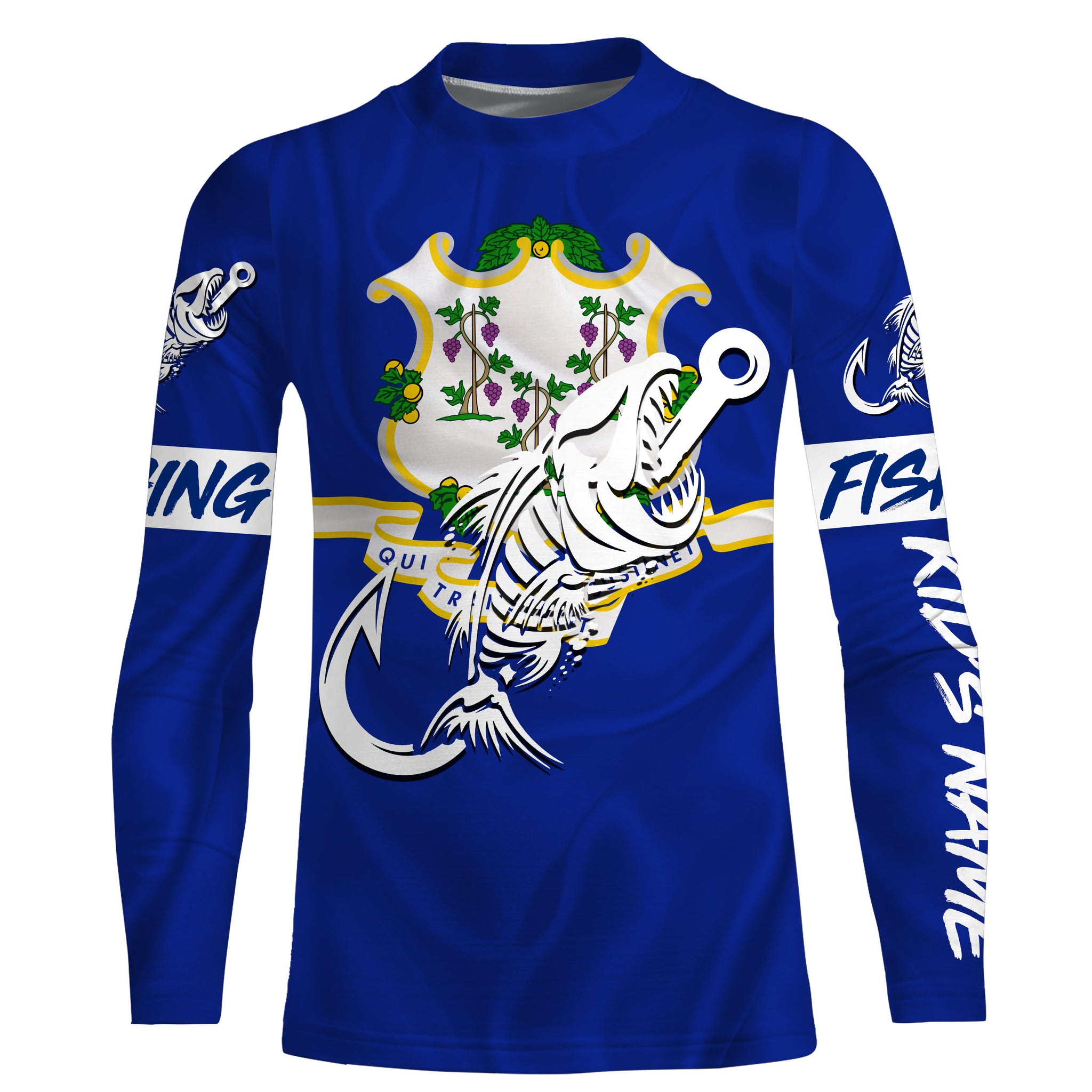 CT Fishing Custom Connecticut Flag Fish hook skull Custom sun protection fishing shirts for men, women NQS3391