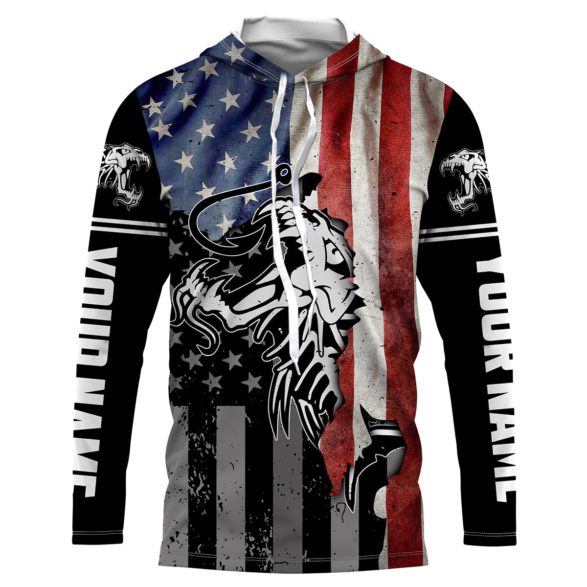 Fish reaper skull Fishing American Flag 4th July patriot Custom performance Patriotic Fishing Shirts NQS3565