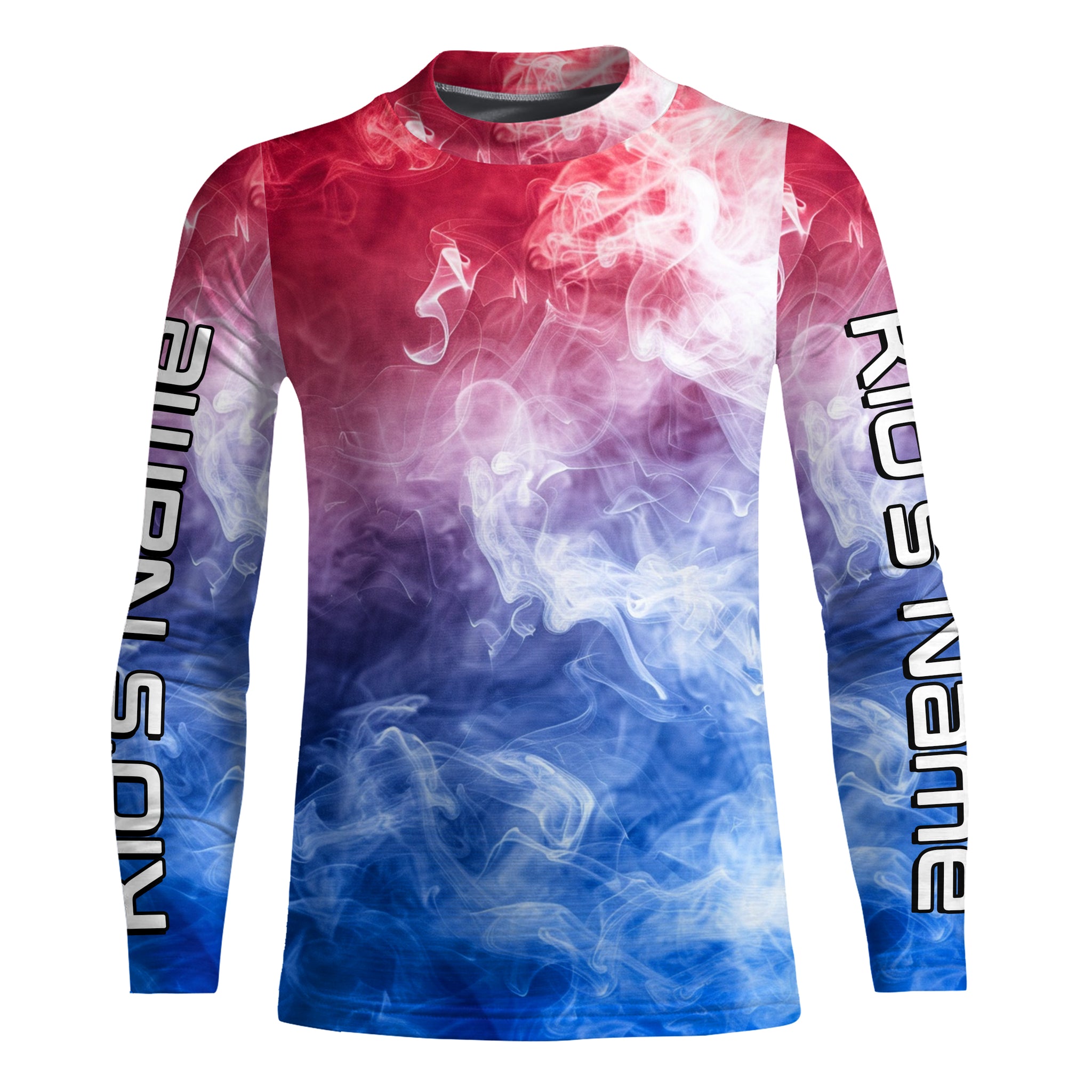 Red, White And Blue Smoke Long Sleeve Performance Fishing Shirts, Patriotic Fishing Jerseys IPHW5968