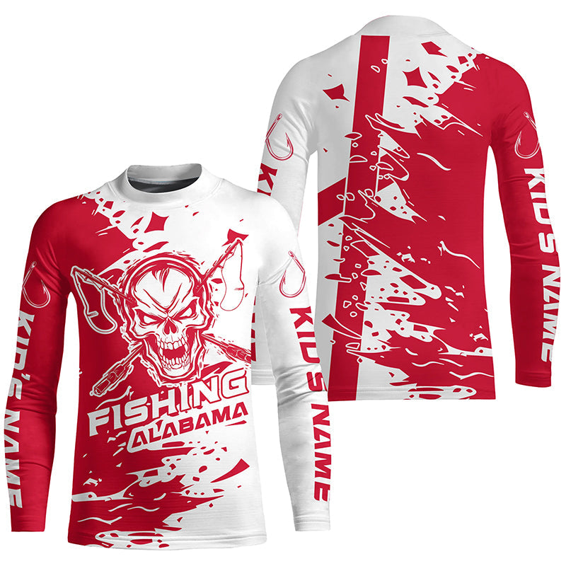 Alabama Fishing Custom Long Sleeve Fishing Shirts, Alabama Flag Skull Fishing Jerseys IPHW7002