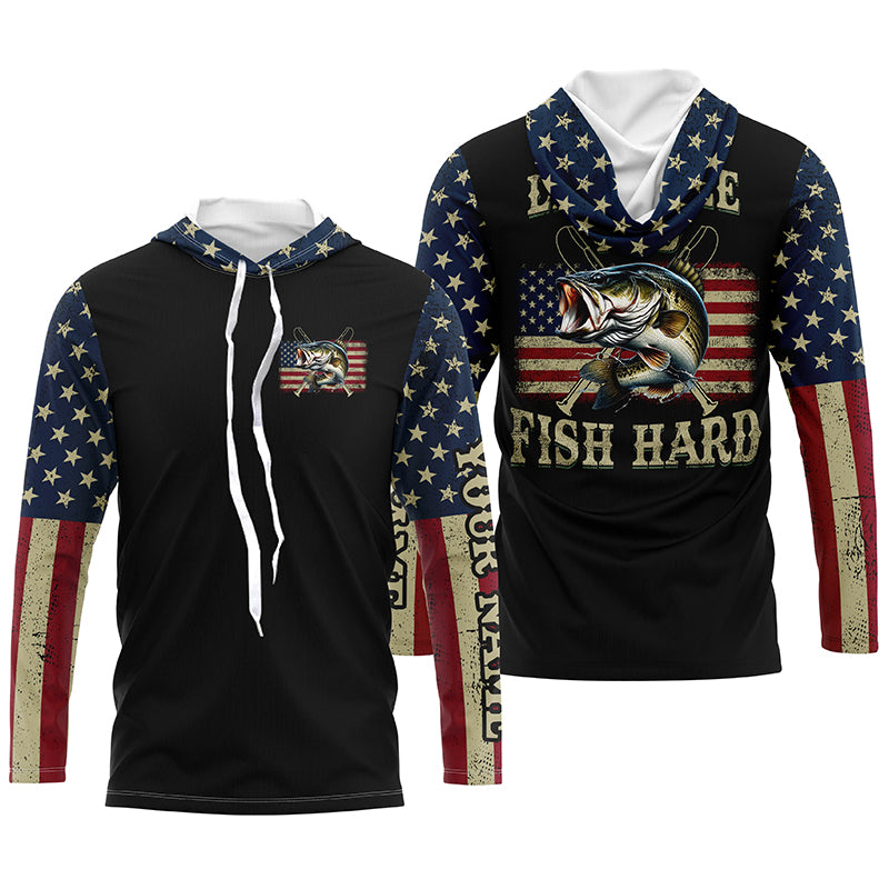 Live Free and Fish Hard American Flag Bass fishing Custom Name 3D All over printed Fishing gift NQS2521