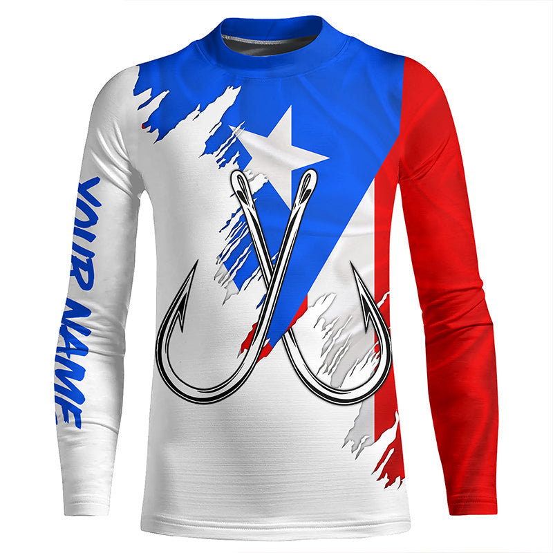 Puerto Rico flag Fishing Fish Hook UV protection custom long sleeve Patriotic fishing apparel NQS8192