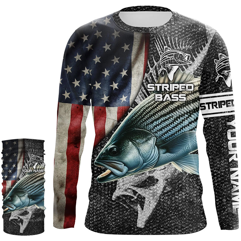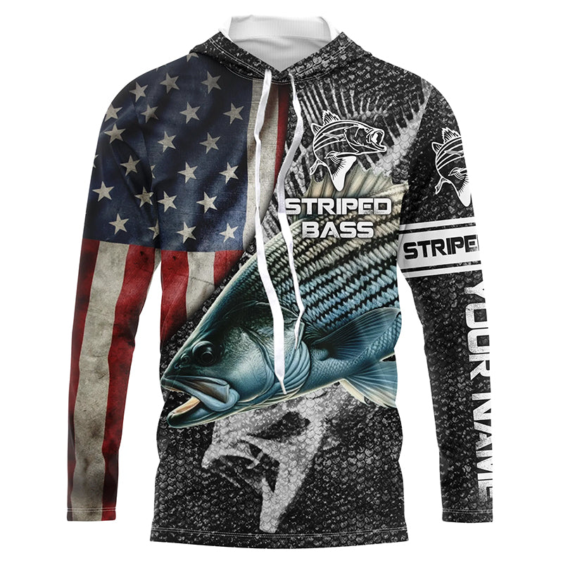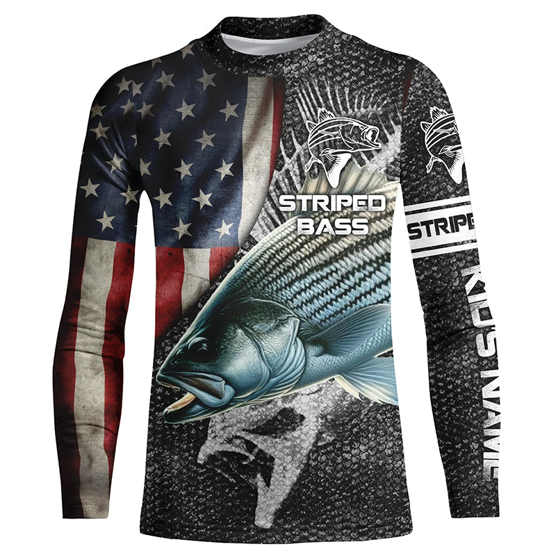 Striped bass fishing Custom American flag patriotic Performance UV protection fishing shirts for men NQS1692