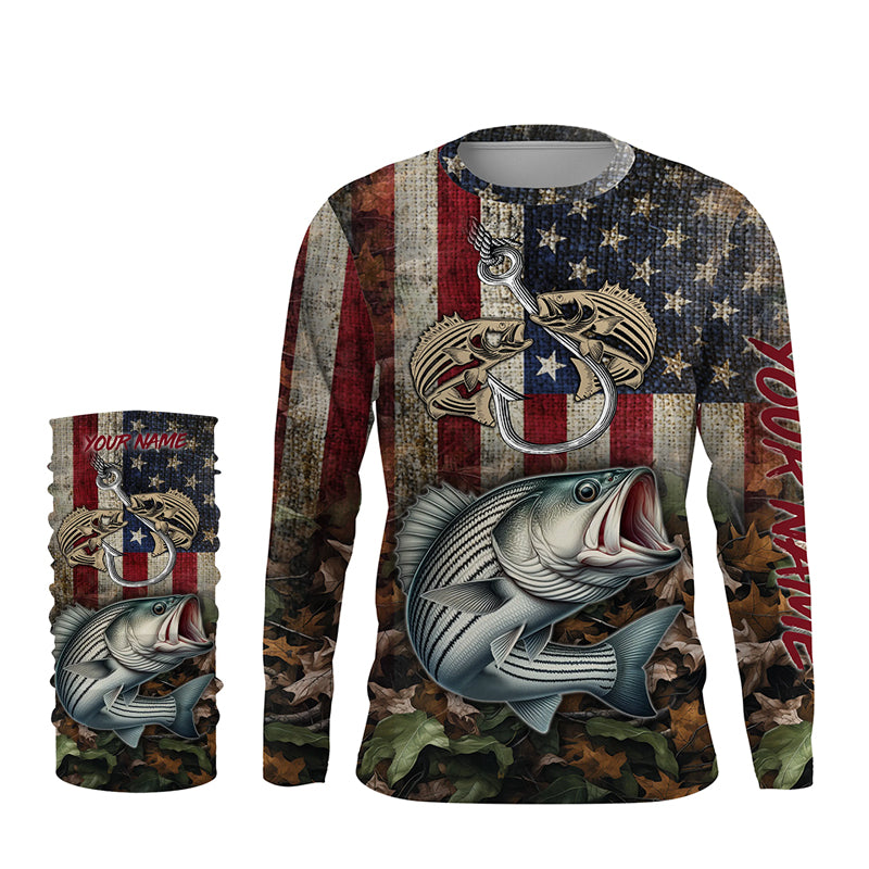 Striped bass fishing camo American Flag patriotic UV protection customize name fishing apparel NQS1902
