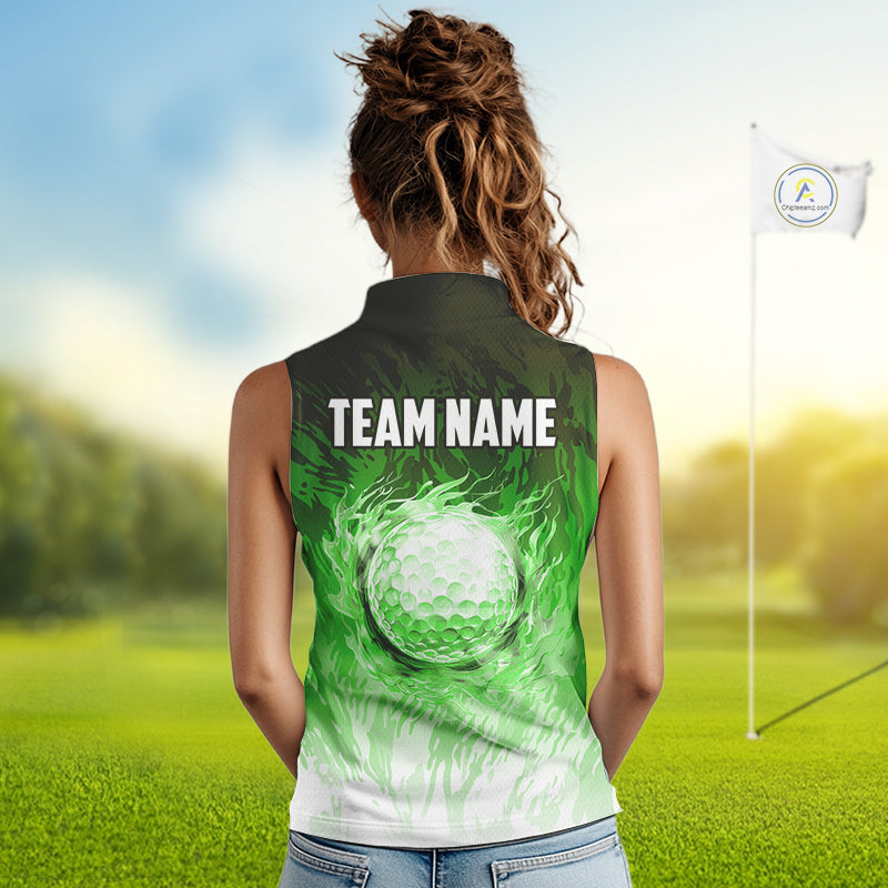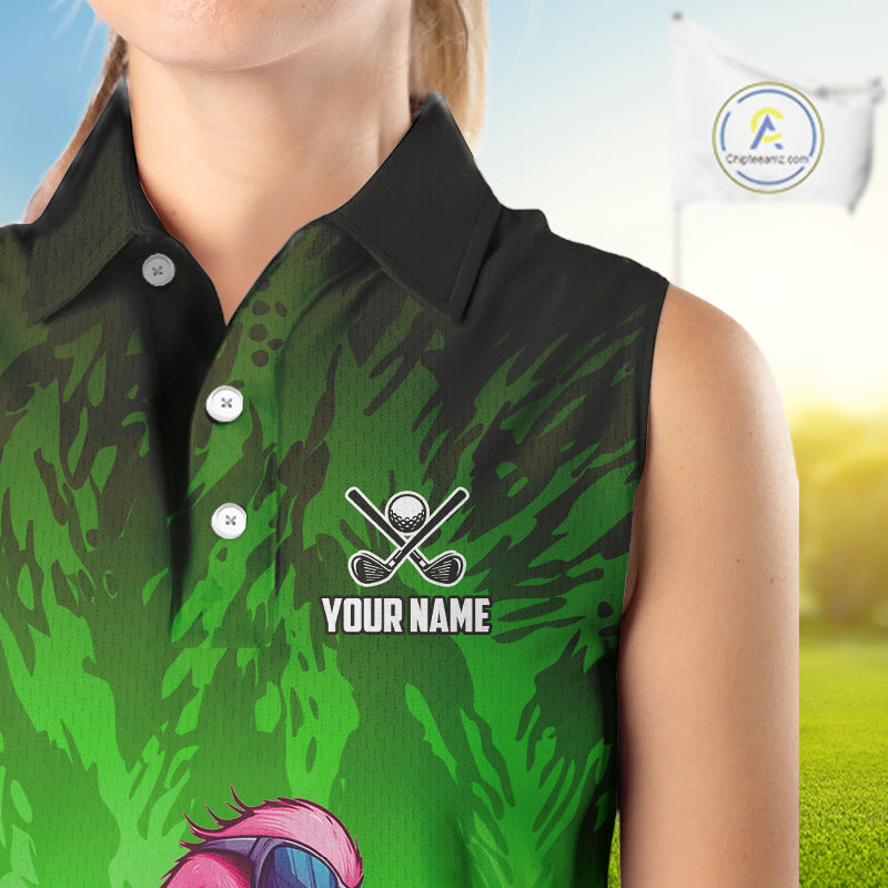 Funny Flamingo Green camo flame golf ball Women Golf Sleeveless Polo Shirt Custom Ladies Golf tops NQS9799