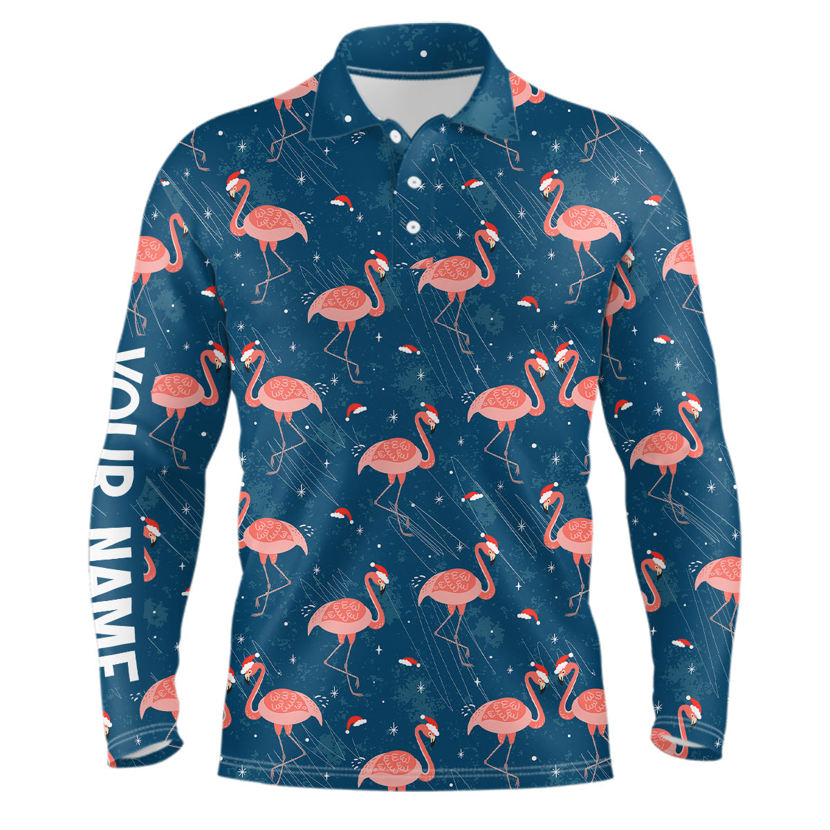 Pink Flamingo Christmas Blue Pattern Men golf polo shirt custom Christmas gifts for team golfer NQS8904
