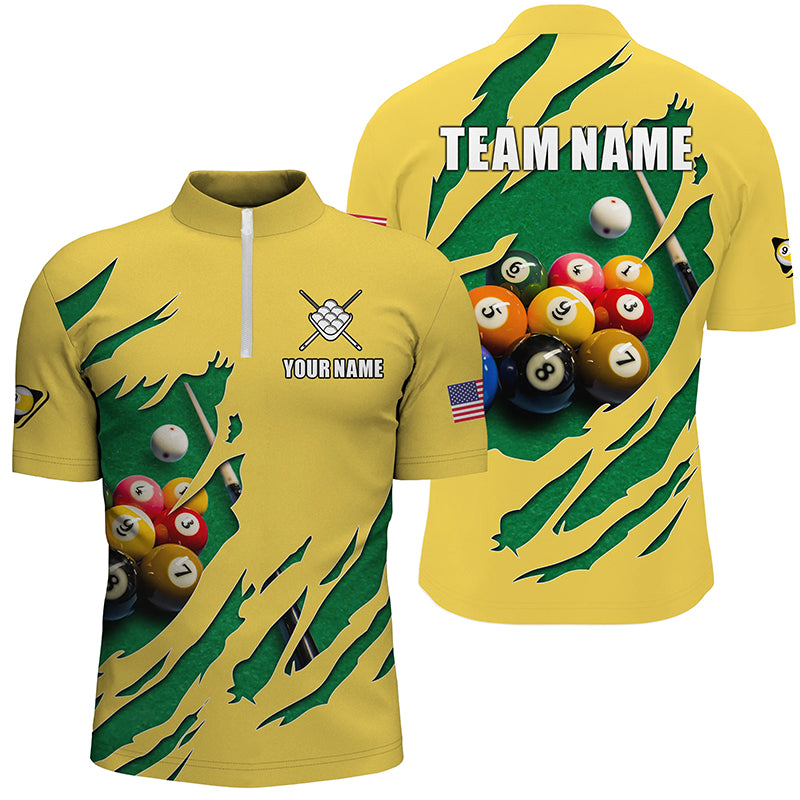 Funny 3D Billiard Table 9 Ball Pool Shirts For Men Custom Yellow 9 Ball Billiard Team Jerseys TDM2741