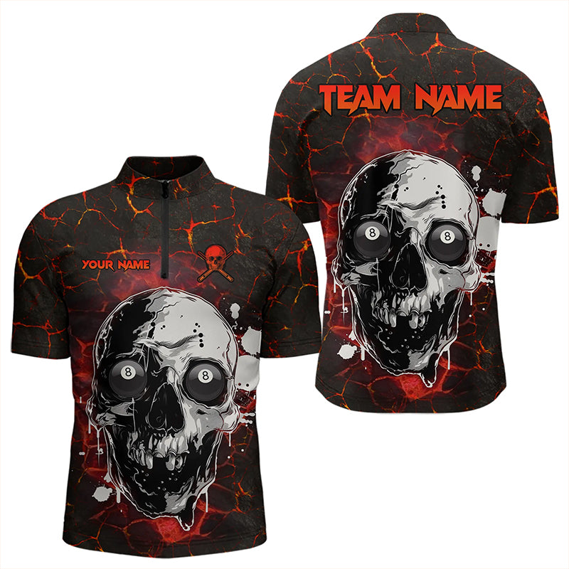 Personalized Red Crack Grunge Skull Men Billiard Shirts, Funny Billiard Shirts Pool Team Jerseys TDM3224