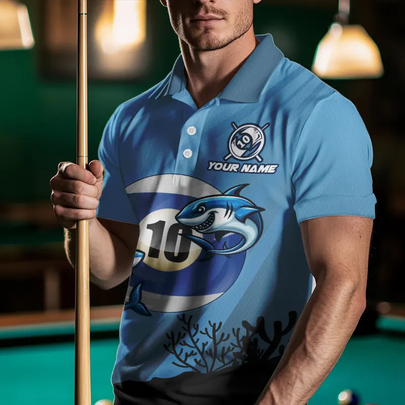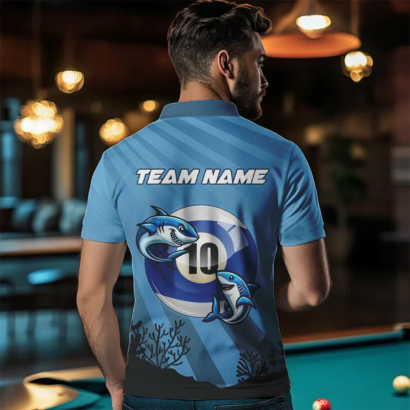 Personalized Shark 10 Ball Pool Blue Men Billiard Shirts Custom Funny Billiard Shirts Pool Jerseys TDM3427