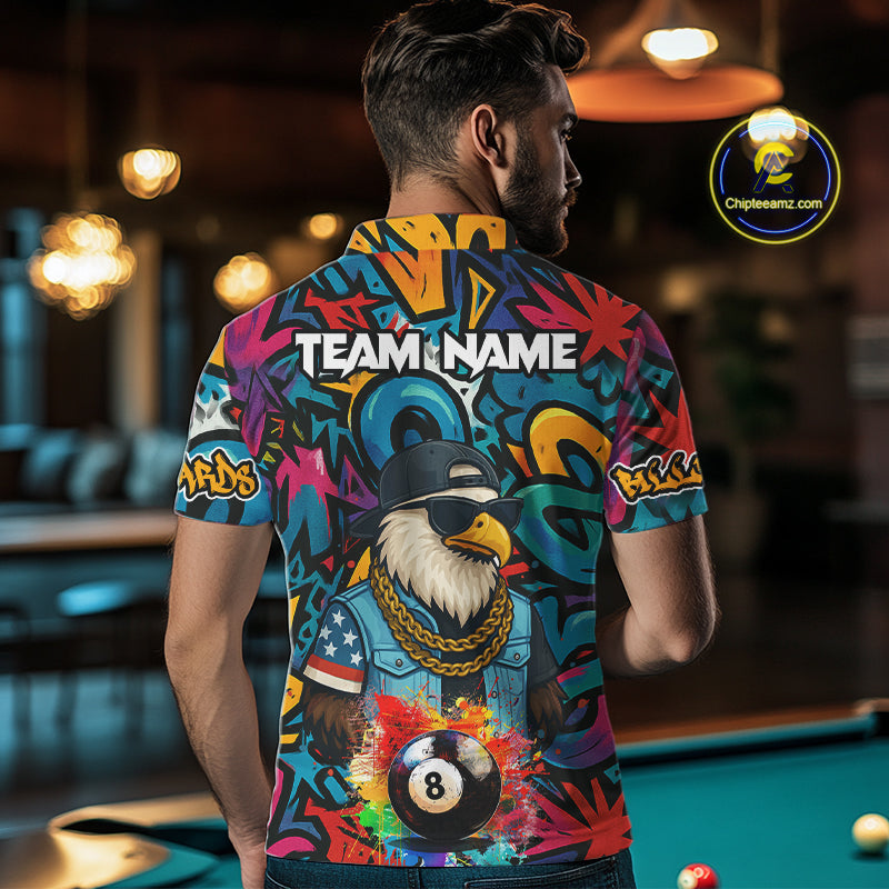 Funny Eagle Colorful Graffiti 8 Ball Billiard Shirt For Men Custom Billiard Jersey Pool Team Shirts TDM3854