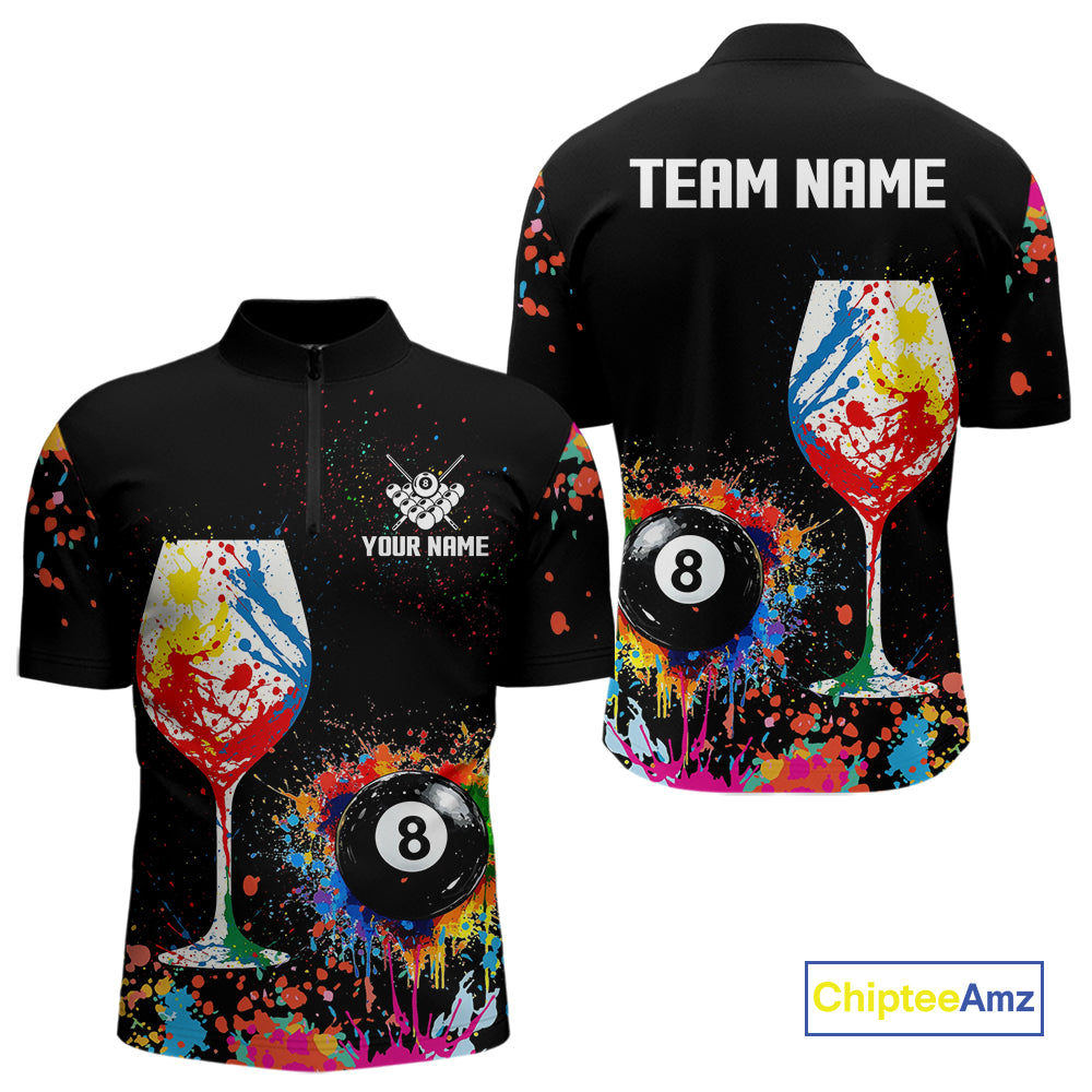 Personalized Colorful Splash 8 Ball Billiard Shirts For Men, Funny Wine Glass Custom Pool Jerseys TDM4100
