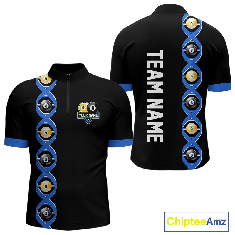DNA Billiard 8 Ball & 9 Ball Shirts For Men Custom Funny Pool Jerseys Team Polo & 1/4 Zip |Blue TDM4391